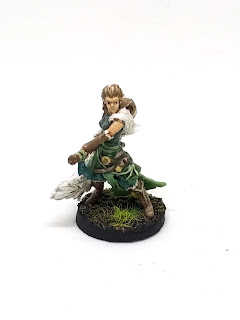 Here is the other scout: Jain Fairwood. Despite my uncertainty about the future of these scouts, I do think that the result is good here. In retrospect, I could have probably taken the highlights on the cloak and hair even higher. I had a hard time with the part of her cloak that falls down over her back since it is rather flat. It took several layers of highlights and base color glazes to get something I deemed acceptable. The final effect is somewhat mottled, which is an artifact of having done an ad hoc mix of layering, wet blending, and feathering.